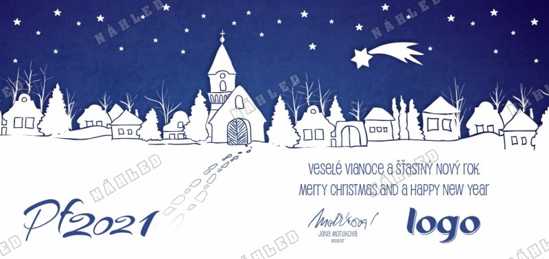 Večerní vánoční přání s hvězdami a letící kometou nad městem