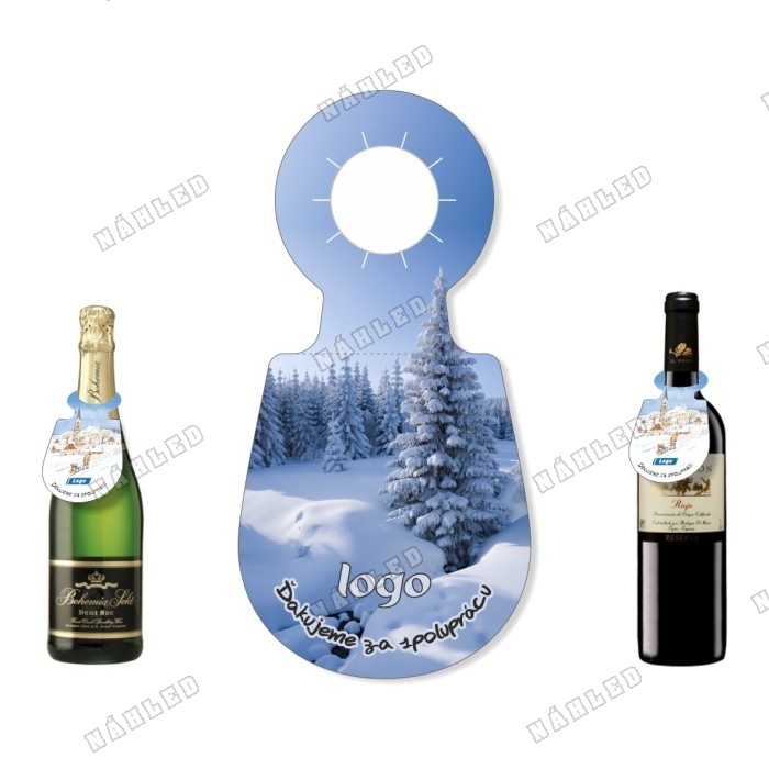 Visačka na lahev se zasněženými lesy